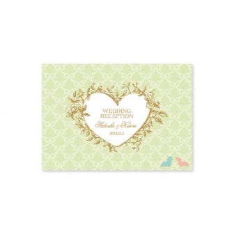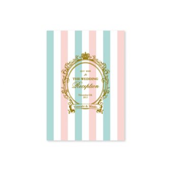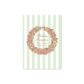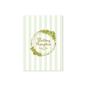 淡いグリーンのストライプに、WeddingReceptionの文字の雰囲気に合わせたイニシャルロゴを入れたシンプルなデザインです。design by ayu