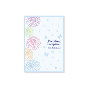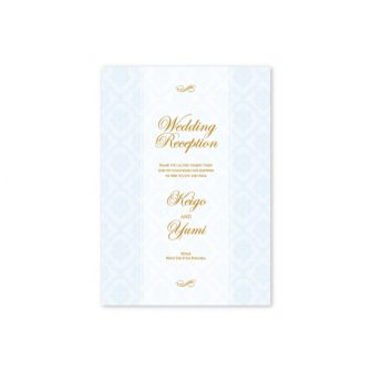 淡いブルーのダマスクで上品なデザインに仕上げました。お写真の少ないデザインですので、ゆったりとした配置に。中面の空いたスペースにはフラワーをあしら…