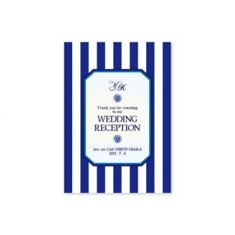 淡いグリーンのストライプに、WeddingReceptionの文字の雰囲気に合わせたイニシャルロゴを入れたシンプルなデザインです。design by ayu