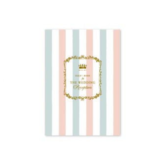 くすんだブルーとピンクのストライプのデザイン。アンティークな雰囲気のフレームと合わせて上品に仕上げました。お写真は少なめに、P2はイラストを配置しま…