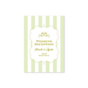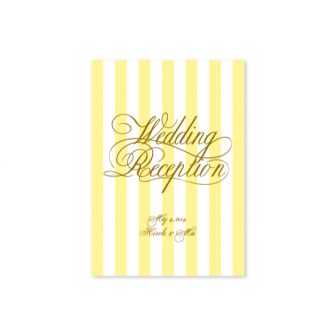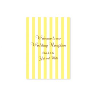イエローのストライプにエレガントな筆記体を合わせたデザイン。明るいイエローがとってもさわやかでかわいらしいデザインです。design by ayu