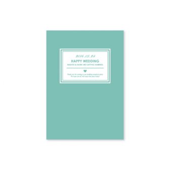 白藍色のストライプにイニシャルロゴをあわせたシンプルなデザイン。中ページはガーランドをつかって楽しい雰囲気になりました。design by ayu