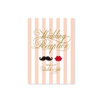 ヒゲとクチビルのデザインのヒゲをサングラスにかえておつくりしました。席札は斜めのストライプにして裏にはイニシャルロゴを。プロフィールブック・席次表…