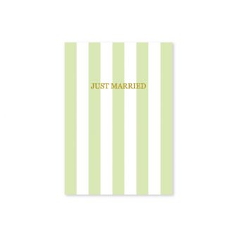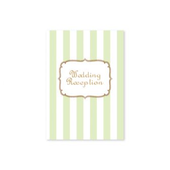 シンプルなグリーンのストライプのデザインで招待状とプロフィールブック・席次表をおつくりしました。席札はピンク。フレームの形が同じなので、色が違って…