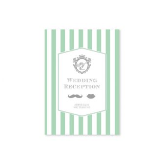 シンプルなストライプにエレガントな筆記体をあわせたデザイン。席札にはヒゲとクチビルのモチーフをいれました。design by ayu