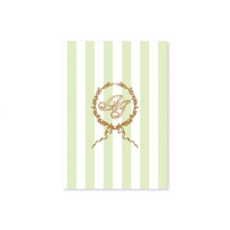 シンプルなグリーンのストライプにリーフデザインのイニシャルロゴをあわせました。design by ayu
